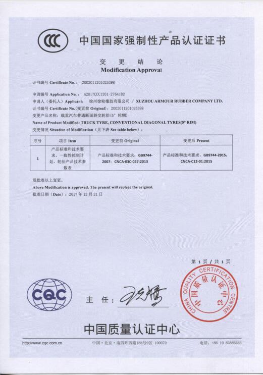 質(zhì)量是企業(yè)的生命,是企業(yè)得以生存和發(fā)展的基礎。公司自2006年創(chuàng )辦以來(lái),徐輪橡膠就是一直對產(chǎn)品品質(zhì)孜孜以求,精益求精。以“質(zhì)量是生命 科技求領(lǐng)先 過(guò)程零缺陷 服務(wù)到永遠”為質(zhì)量方針,徐州徐輪橡膠有限公司建立健全了科學(xué)完善的質(zhì)量保證體系,自2009年起先后通過(guò)了ISO9001-2008、CCC、美國DOT、歐洲E-mark等質(zhì)量體系認證。